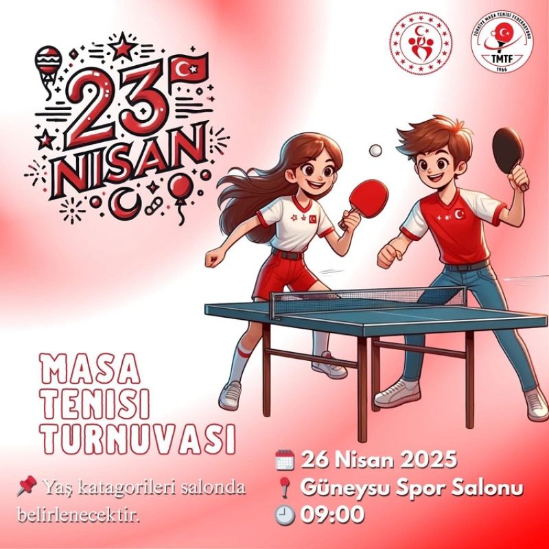 Her yıl olduğu gibi 23 Nisan Ulusal Egemenlik ve Çocuk Bayramı ile Dünya Masa Tenisi Günü nedeniyle tertiplenen masa tenisi turnuvası 26 Nisan Cumartesi günü Güneysu Spor Salonunda düzenlecektir.Sporcu olarak katılımın fazlaca beklendiği bu turnuvaya tüm sporseverler davetlidir.